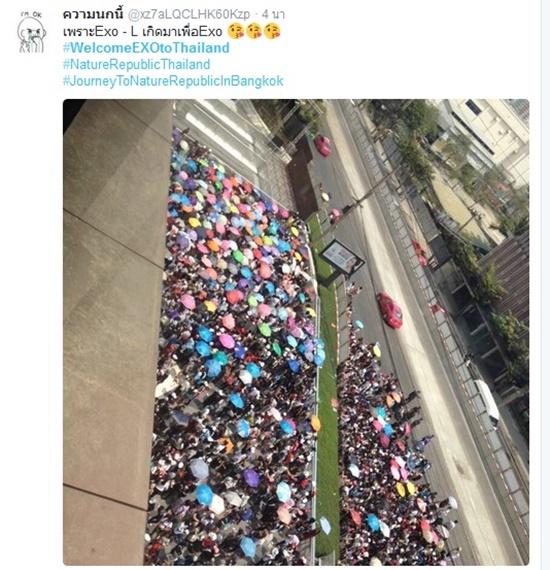แจ้งเตือนประชาชนล่วงหน้าข้ามวันเลยทีเดียว สำหรับกรณีที่ศิลปิน วง EXO บอยแบนด์สุดฮอตจากเกาหลีใต้ ที่จะเดินทางมาแจกลายเซ็นให้กับแฟนคลับในงาน EXO Journey To Nature Republic Bangkok ในวันนี้ (8 มีนาคม 2559) เวลา 15.00-18.00 น. ณ ห้างสรรพสินค้าเซ็นทรัลลาดพร้าว โดยทางเจ้าหน้าที่ตำรวจ สน.พหลโยธิน ระบุว่า ให้ประชาชนเลี่ยงเส้นทางในเวลาดังกล่าว เนื่องจากจะมีการปิดการจราจรช่องรถเมล์ด้านในด้วย เพื่อเป็นการอำนวยความสะดวกทั้งด้านการจราจรและความปลอดภัย หลังคาดว่าจะมีแฟนคลับเดินทางมาร่วมงานในครั้งนี้เป็นจำนวนมาก