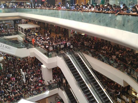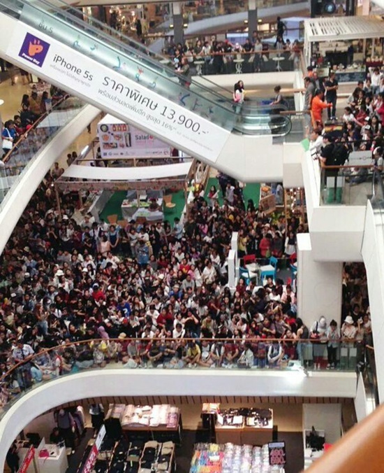 ล่าสุดเมื่อเวลา 11.00 น. ถึงเวลาที่ห้างเปิดบรรดาแฟนคลับก็ได้วิ่งกรูเข้ามาในห้างและออกันอยู่หน้าเวทีเป็นจำนวนมาก นอกจากนี้ยังมีรายงานระบุว่า เมื่อ 5 หนุ่ม เซฮุน ชานยอล ซูโฮ เฉิน และ ซิ่วหมิน เดินเข้ามาในห้าง ก็มีแฟนคลับวิ่งเข้ามาโฉบเอาของยัดใส่มือหนุ่มเซฮุน ทำเอาการ์ดตีมือจนต้องถอยออกไป ส่วนความคืบหน้าและสถานการณ์จราจรจะเป็นอย่างไรจะรายงานให้ทราบต่อไป