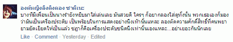 ฝ่ายที่ไม่ชอบใจต่างออกมาวิจารณ์การกระทำดังกล่าวว่าเป็นเรื่องไม่เหมาะสม ระบุว่าชฎาเป็นของสูง ไม่ควรนำมาใส่เล่น ๆ ในขณะที่ฝ่ายแฟนคลับรวมถึงคนที่ไม่เห็นด้วยกับการต่อว่านักร้องสาวก็แสดงความคิดเห็นว่า แค่นำชฎามาสวมไม่เห็นจะเป็นเรื่องใหญ่ ในเมื่อไม่ได้แสดงกิริยาอะไรไม่เหมาะสม และที่สำคัญชฎาก็เป็นเพียงเครื่องประดับศีรษะเท่านั้น ไม่ได้มีความศักดิ์สิทธิ์สูงส่งอย่างที่คนไทยบางคนพยายามยัดเยียดให้