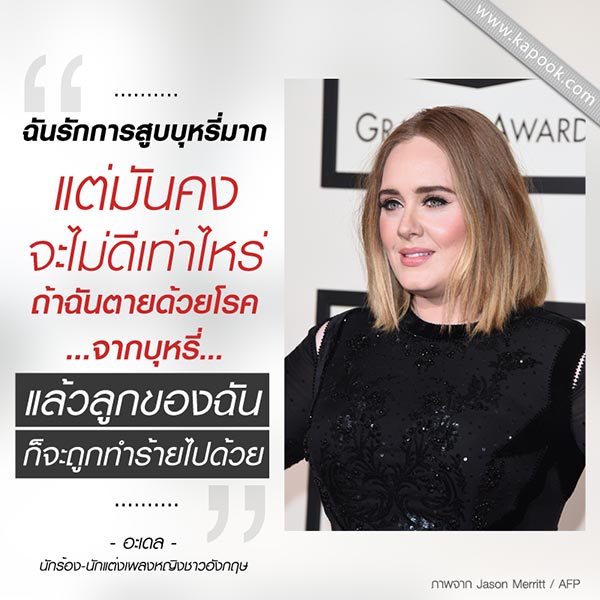 "ฉันรักมันมาก แค่คงจะดูไม่ดีเอาเสียเลยถ้าฉันจากโรคที่เกี่ยวกับบุหรี่ และลูกของฉันก็คงจะเสียใจ" อะเดล เผย