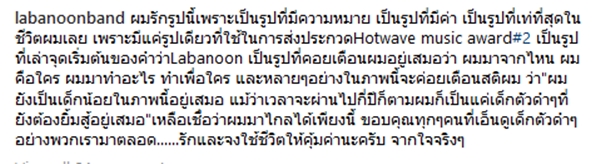 โดยเมื่อวันที่ 20 ตุลาคม 2560 วงลาบานูน ได้เผยให้เห็นภาพที่ที่ใช้ในการส่งเพื่อเข้าประกวด Hotwave music award ครั้งที่ 2 ซึ่งทางวงบอกว่า เป็นภาพที่มีความหมายที่สุด มีค่าที่สุด และเท่ที่สุดในชีวิต ซึ่งรูปนี้คอยเตือนเสมอว่า ตนมาจากไหน ตนคือใคร ทำอะไร และทำเพื่อใคร