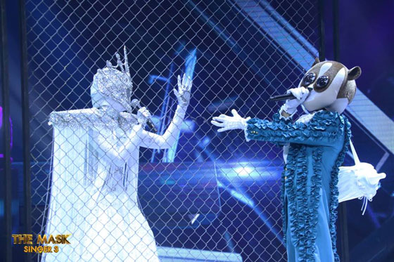 โดยหน้ากากมงกุฎเพชร มาโชว์พลังเสียงและเทคนิคการร้องในเพลง "Symphony" ขณะที่ หน้ากากนางอาย มาเต็มในเรื่องของอารมณ์กับเพลง "วิญญาณ" ซึ่งก็นับได้ว่าดีงามกันไปคนละแบบ จนเลือกแทบไม่ถูกว่าจะเชียร์คนไหนดี แต่สุดท้ายหน้ากากนางอายก็เป็นฝ่ายชนะไป ด้วยคะแนนที่สูสีกันสุด ๆ ทำให้ หน้ากากมงกุฎเพชร ต้องถอดหน้ากากก่อน ซึ่งตัวจริงของเธอก็คือ แก้ม วิชญาณี ตามคาด
