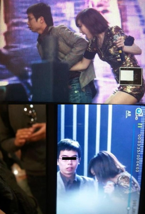 แทยอน (Tae Yeon) ถูกชายหนุ่มบุกขึ้นลากตัวลงเวที ในระหว่างโชว์ Run Devil Run (ปิงบุ๊ค)