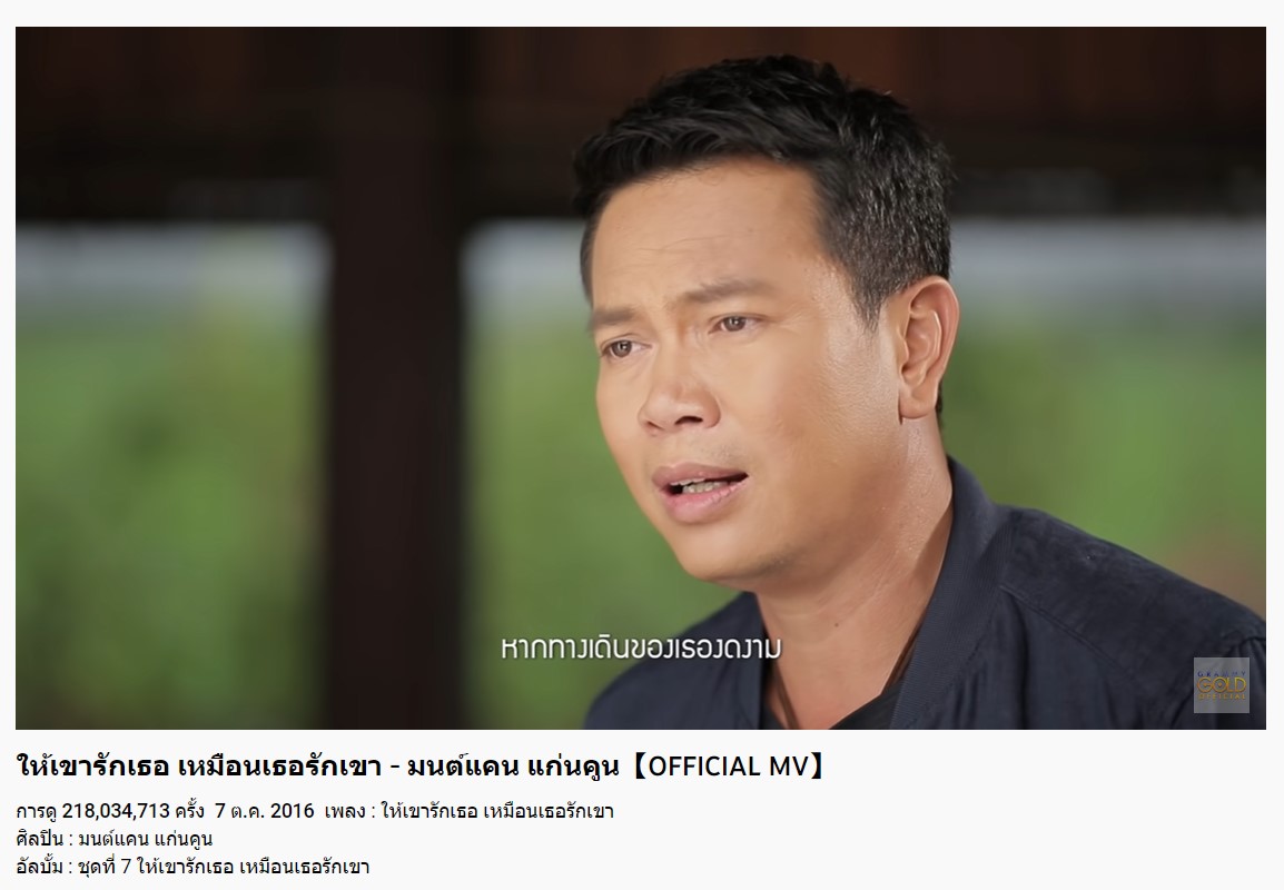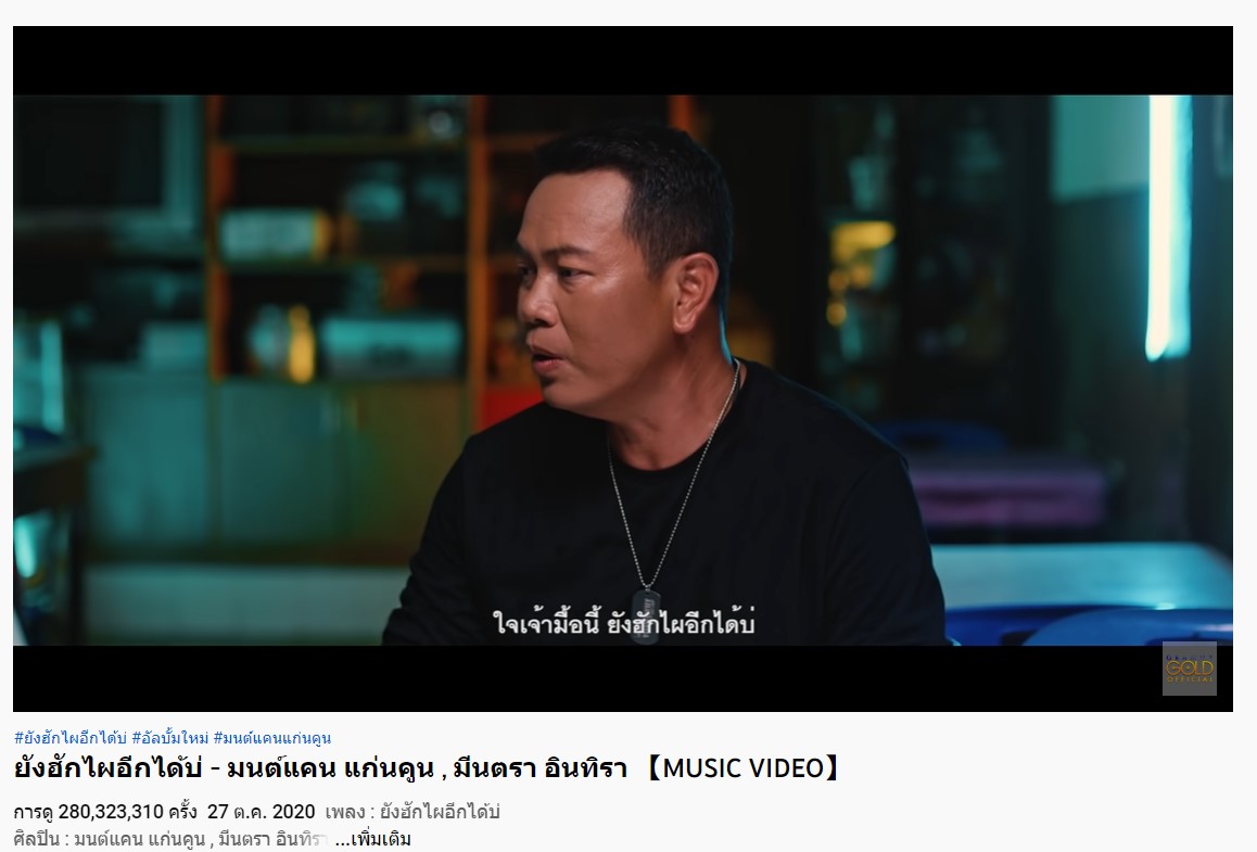 มนต์แคน แก่นคูน ยังฮอตไม่หยุด ยอดวิวยูทูบสูงสุดในไทย 2 ปีซ้อน แถมมียอดวิวเพลงเกิน 100 ล้านวิว มากถึง 11 เพลง ทุบสถิติเยอะสุดในไทย