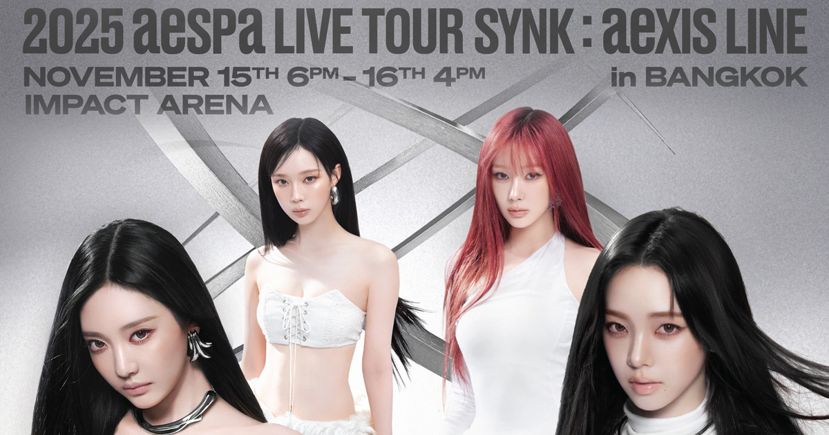 aespa (เอสป้า) จะมาพบกับแฟนคลับชาวไทยในเวิลด์ทัวร์คอนเสิร์ตครั้งที่สาม 2025 aespa LIVE TOUR - SYNK : aeXIS LINE - in BANGKOK (ทูเธาซันด์ทเวนตี้ไฟว์ เอสป้า ไลฟ์ ทัวร์ - ซิงก์ : เอ็กซิส ไลน์ - อิน แบงค็อก) ในวันเสาร์ที่ 15 พฤศจิกายน 2025 เวลา 18.00 น. และวันอาทิตย์ที่ 16 พฤศจิกายน 2025 เวลา 16.00 น. รวมทั้งหมด 2 รอบการแสดง ณ อิมแพ็ค อารีน่า