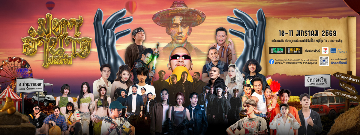 งาน มหาอำนาจ เฟสติวัล จะเกิดขึ้นในวันที่ 10-11 มกราคม 2569 ณ ลานมหาอำนาจ บ้านโคกเจริญ ต.นาป่าแซง อ.ปทุมราชวงศา จ.อำนาจเจริญ เปิดขายบัตรแล้ววันนี้ทาง www.allticket.com หรือที่ Counter Service All Ticket ในร้าน 7- Eleven ทุกสาขาทั่วประเทศ บัตรราคา 999 บาท เข้างานได้ทั้ง 2 วัน