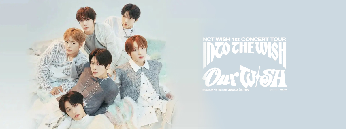 NCT WISH (เอ็นซีที วิช) และ SM True (เอสเอ็ม ทรู) เติมพลังแห่งความปรารถนา ด้วยทัวร์คอนเสิร์ตเต็มรูปแบบครั้งแรกในประเทศไทยของบอยกรุ๊ปยอดนิยม NCT WISH (เอ็นซีที วิช) กับ NCT WISH 1st CONCERT TOUR 'INTO THE WISH : Our WISH' IN BANGKOK (เอ็นซีที วิช เฟิสต์ คอนเสิร์ต ทัวร์ ‘อินทู เดอะ วิช : อาวเออร์ วิช’ อิน แบงค็อก) ที่จะจัดขึ้นในวันเสาร์ที่ 4 เมษายน 2026 เวลา 18.00 น. ณ ไบเทค ไลฟ์