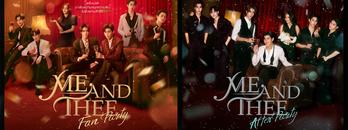 และเพื่อให้คอซีรีส์ได้สนุกสนานเต็มอิ่มแบบใกล้ชิด กับเหล่านักแสดงที่นำโดยสองหนุ่มสุดฮอต ปอนด์ ณราวิชญ์ เลิศรัตน์โกสุมภ์ กับ ภูวินทร์ ตั้งศักดิ์ยืน พร้อมด้วย วิลเลี่ยม จักรภัทร แก้วพันธุ์พงษ์, เอส ศุภ สง่าวรวงศ์, บอนนี่ ภัทราภัสร์ โบรัชตะสุวรรณ์, เพิร์ธ ธนพนธ์ สุขุมพันธนาสาร และ แซนต้า พงศภัค อุดมโภชน์ ที่รวมตัวกันจัดปาร์ตี้สุดเอ็กซ์คลูซีฟ เตรียมสาดความสนุกและความฟินแบบจัดเต็มให้แฟน ๆ แบบจุใจ 2 วันเต็ม ในงาน Me and Thee Fan Party และ Me and Thee After Party พร้อมเนรมิตบรรยากาศให้เหมือนหลุดออกมาจากหน้าจอมอบของขวัญพิเศษให้คนดูโดยเฉพาะ
