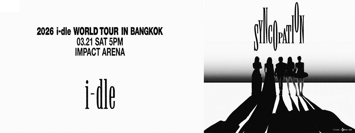 i-dle กลับมาทวงบัลลังก์เกิร์ลกรุ๊ปสุดฮอตแห่งยุค NEVERLAND ชาวไทยเตรียมตัวให้พร้อม สาว ๆ จะมาระเบิดความมันส์ให้แฟน ๆ ได้แดนซ์จัดเต็มในคอนเสิร์ต 2026 i-dle WORLD TOUR [Syncopation] IN BANGKOK จะจัดขึ้นในวันเสาร์ที่ 21 มีนาคม 2569 ณ อิมแพ็ค อารีน่า เมืองทองธานี