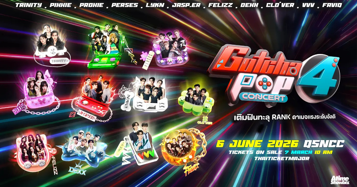 GOTCHA POP 4 คืออีกหนึ่งอีเวนต์ที่แฟน T-POP ไม่ควรพลาด ที่จัดโดย ATIMESHOWBIZ กับเวทีโชว์เพอร์ฟอร์แมนซ์สุดพิเศษที่รวมพลังความมันส์จากศิลปินบอยแบนด์และเกิร์ลกรุ๊ปแถวหน้าของวงการ จัดเต็มทั้งโปรดักชั่น แสง สี เสียง และสเตจเซอร์ไพรส์ที่เตรียมมาเรียกเสียงกรี๊ดแบบเกินคาด เติมอะดรีนาลีนให้แฟนเพลงได้ฟินทะลุแรงค์แบบยกด้อม ในวันเสาร์ที่ 6 มิถุนายน 2569 ณ ศูนย์การประชุมแห่งชาติสิริกิติ์ Exhibition Hall 3-4 ชั้น G รอบเดียวเท่านั้น !!