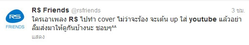 นอกจากนี้ ในทวิตเตอร์ @rsfriends ได้ทวีตว่า "ใครเอาเพลง RS ไปทำ cover ไม่ว่าจะร้อง จะเต้น up ใส่ youtube แล้วอย่าลืมส่งมาให้ดูกันบ้างนะ ชอบ ๆ ^^"