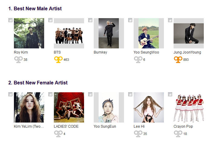 รายชื่อผู้เข้าชิงรางวัล 2013 Mnet Asian Music Awards (MAMA)